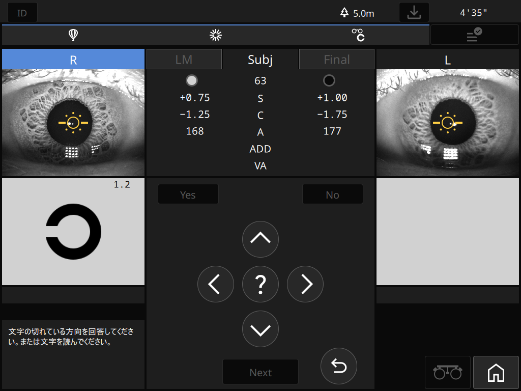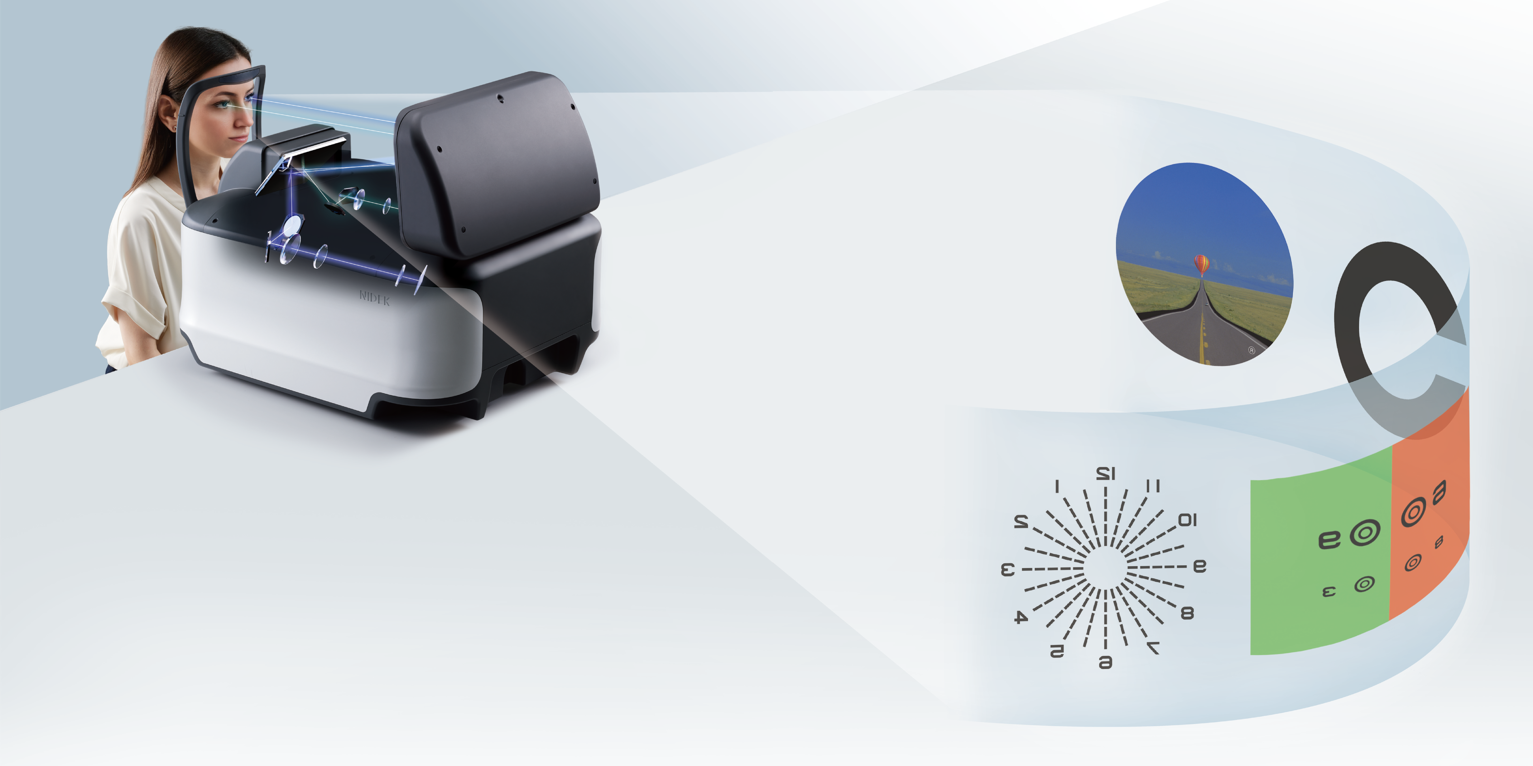 | 実際の生活シーンに合わせた距離での視力測定が可能です。 遠用*⁵と近用*⁶の視標呈示距離を任意に設定できるため、より実用的な視力評価が可能です。 *5 1~10m、無限遠方 *6 30~99cm |