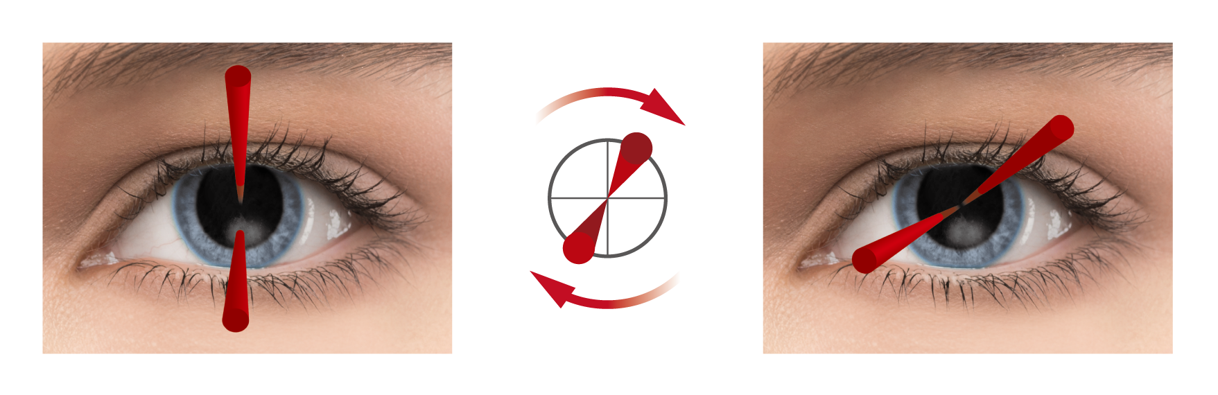 エイミング方式は、アライメント操作が容易なデュアル・ビーム方式を採用しています。エイミング光を回転させることで、さまざまな状態の患部組織に対応が可能です。