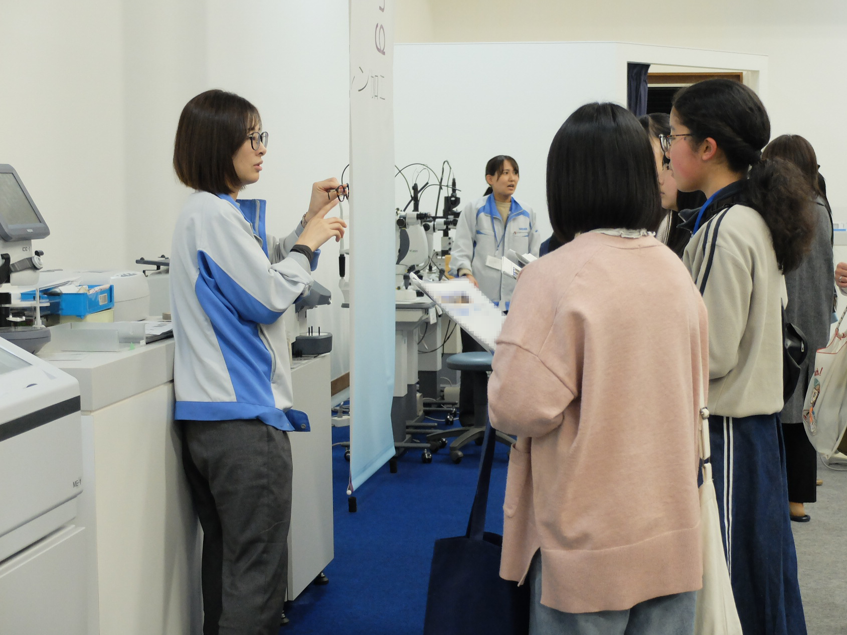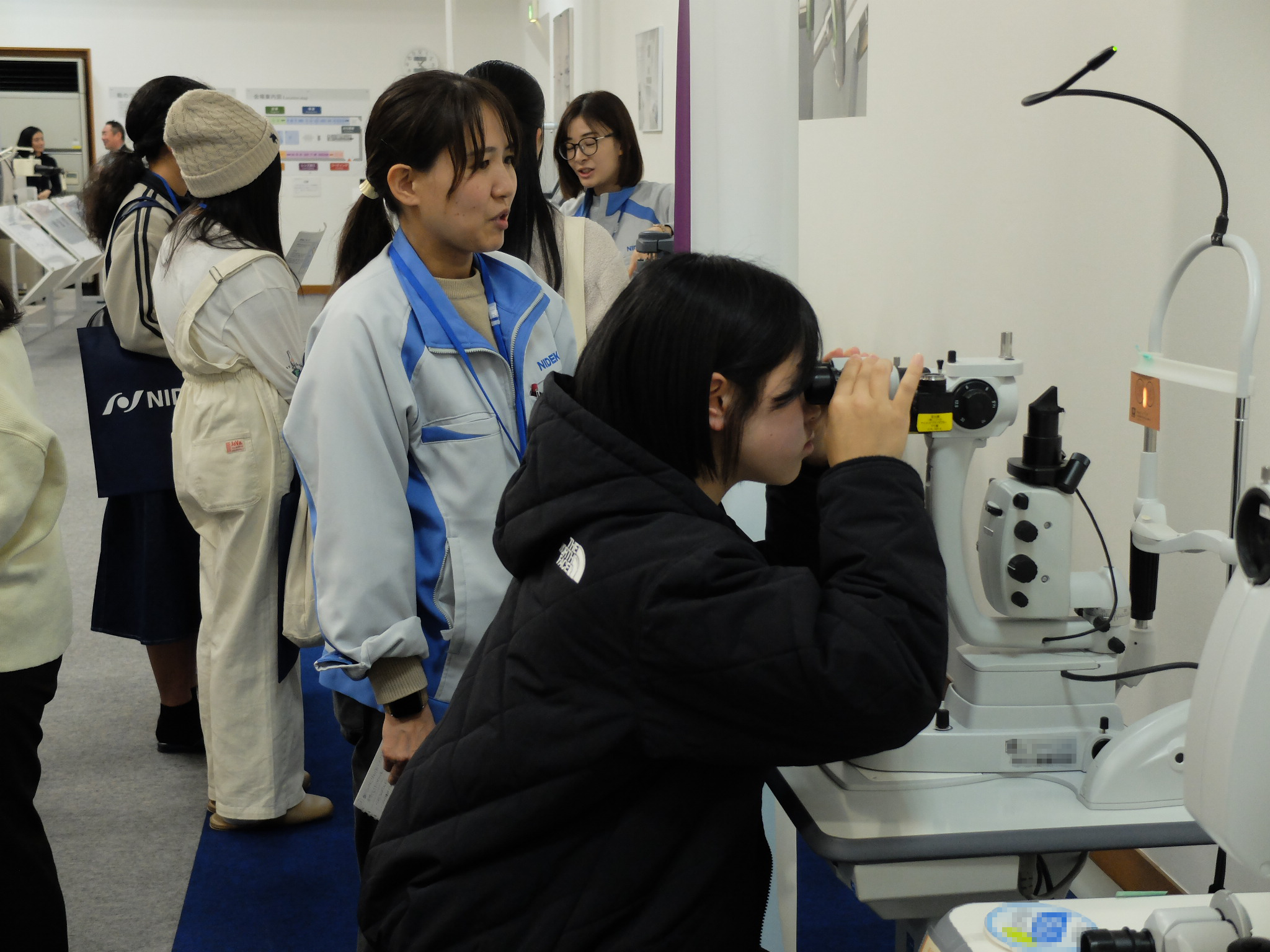 当日は、中高生女子13名が参加し、多彩な技術が人々の「見える」をどのように支えているのかを学べるプログラムを実施しました。最新の検眼機やレンズ加工機のデモンストレーションに加え、光学の原理を活かした「望遠鏡づくり」ワークショップをおこない、参加者には医療とテクノロジー、そしてものづくりの面白さを体感していただきました。 |
