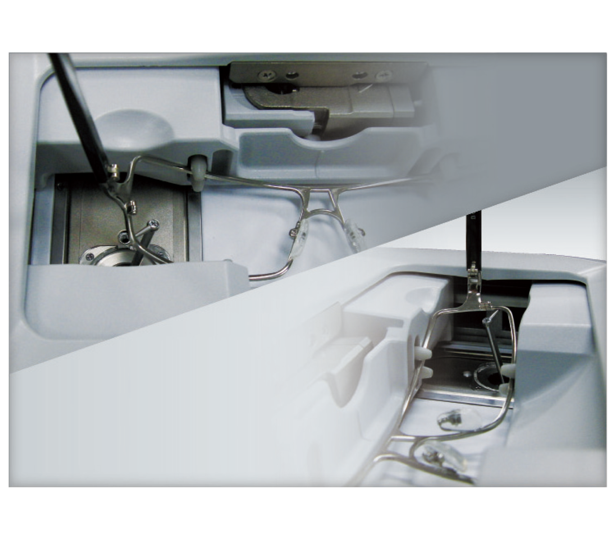 溝角度によって自動可変するので、常にフレームの溝の中心を捉えるため、フレームから外れることはありません。 |
